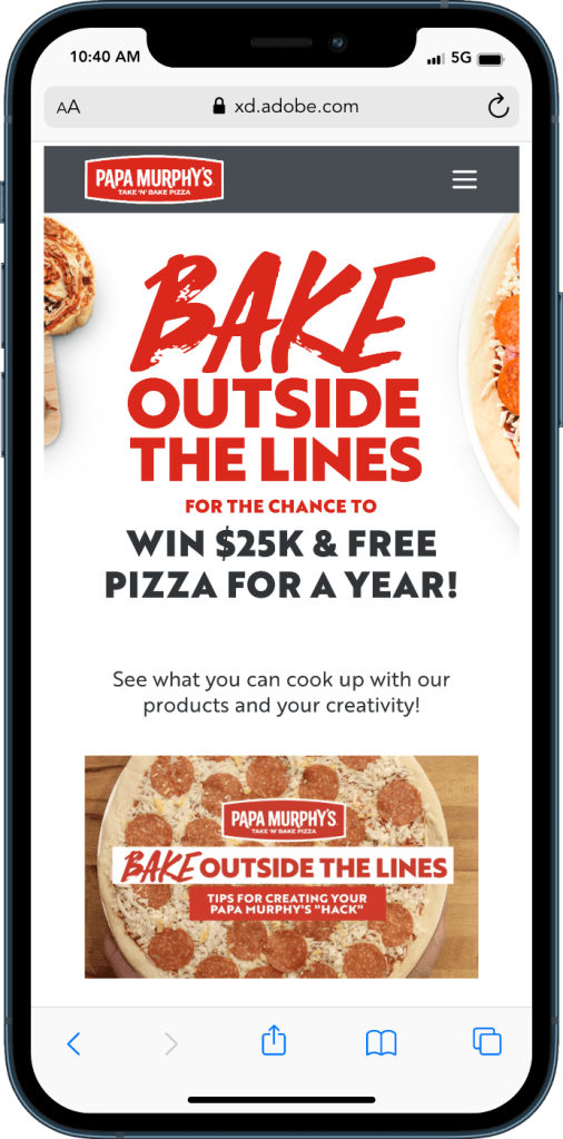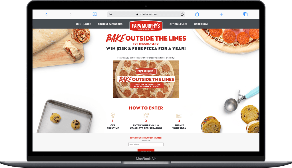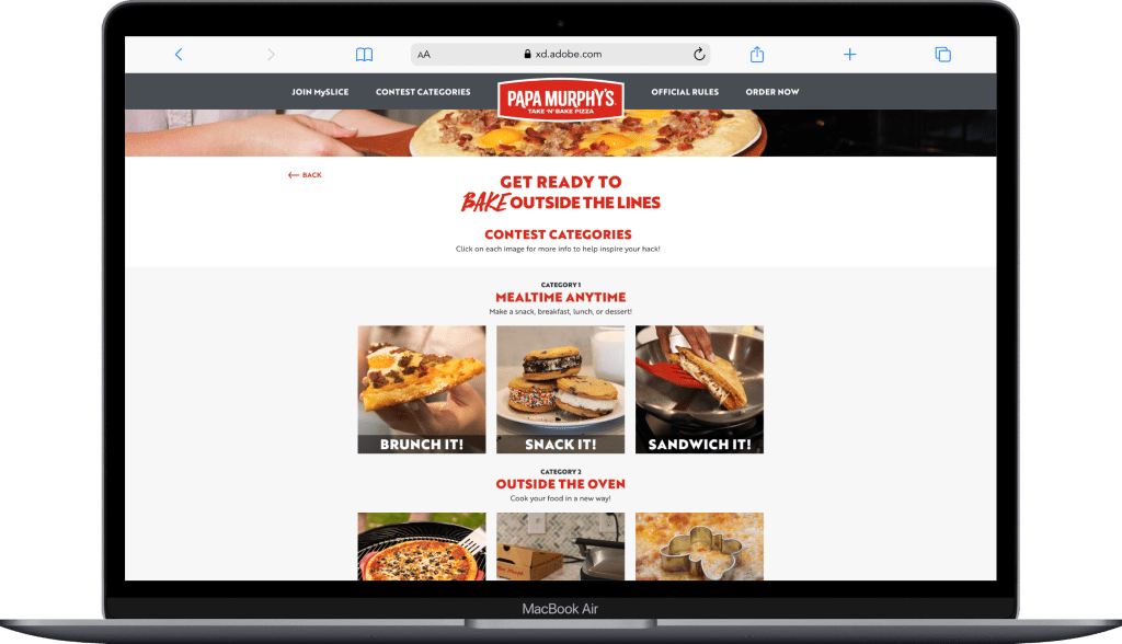 Mechanic: UGC and Sweepstakes – After registering their information, users could submit a written submission and optional photo of how they “hacked” a Papa Murphy’s product. A winning entry received $25,000 and a feature on the official PapaMurphys.com website. To keep users engaged during the judging interim period, the website hosted a sweepstakes for a chance to win a $50 Papa Murphy’s gift card.