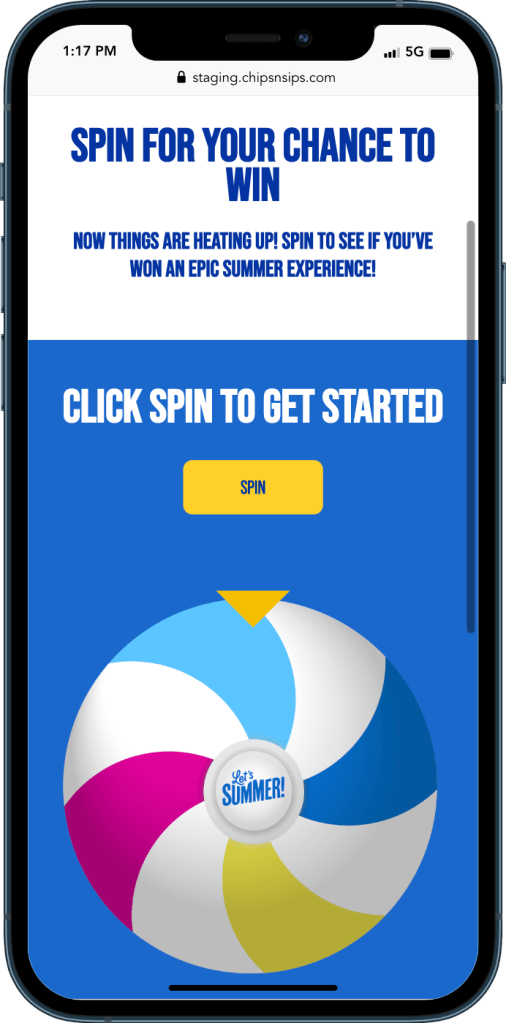 Mechanic: Instant Win – Users would buy participating snack or beverage product, enter a UPC code and/or Bellmarker code, and gain a chance to play the Instant Win spin game to win prizes from either the “Travel” prize pool or the “Entertainment” prize pool. The prize pool included prizes from jetBlue, Carnival cruises, Great Wolf Lodge, StubHub, Go Bowling, Mall of America, and Regal cinemas.