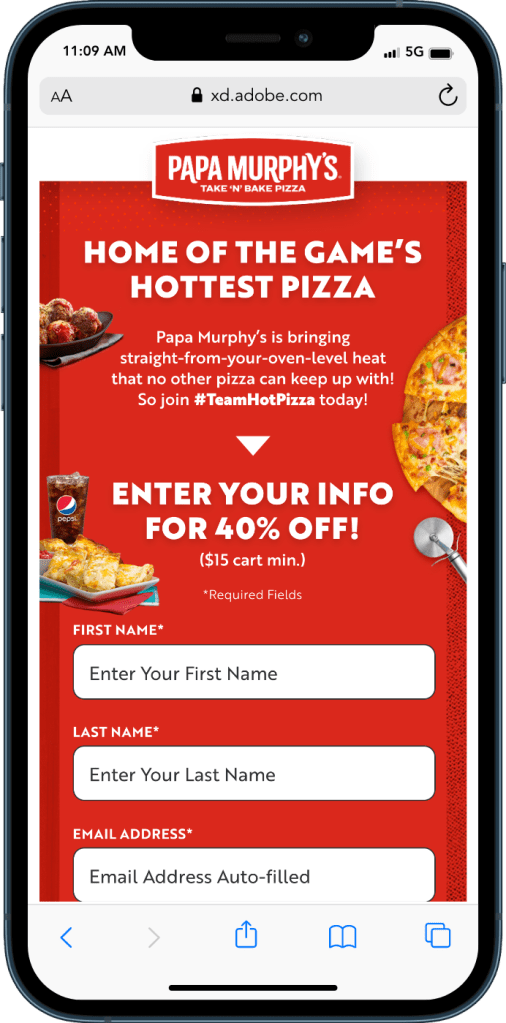 Mechanic: Buy-Get – After registering their information, users received a coupon for 40% off a purchase of $15 or more on PapaMurphys.com. Users also had the opportunity to refer another user via a unique referral link. If a registrant entered their information through a referral link, the original referrer received a unique coupon code for 25% off a purchase of $25 or more on PapaMurphys.com.
